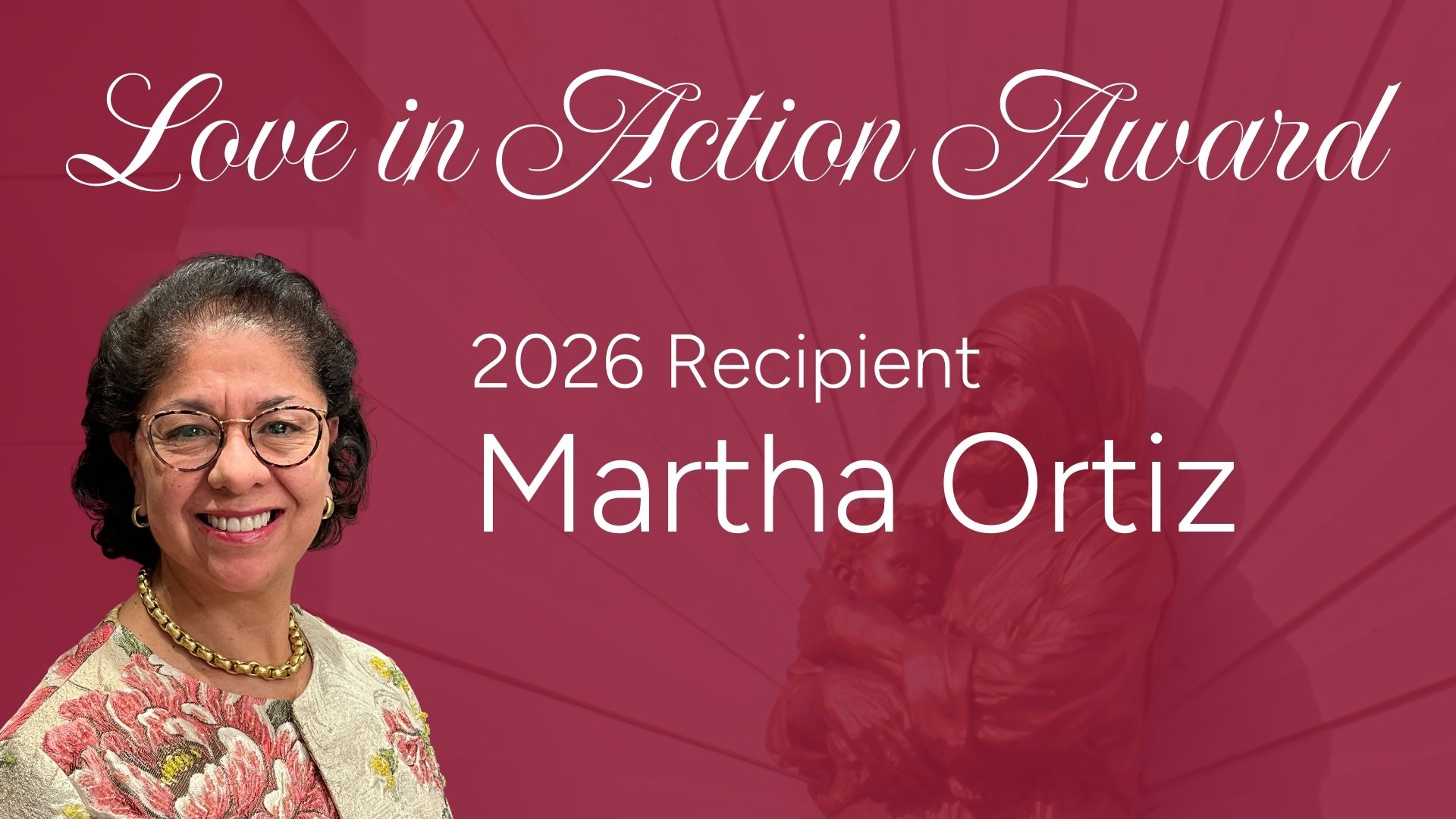 In recognition of her exemplary displays of faith and service, we will honor Martha Ortiz at the Women in Philanthropy Award Luncheon on March 26, 2026, at the Inn at Villanova. During the Luncheon, we will present her with the 2026 Love in Action Award. Inspired by the witness of Saint Teresa of Calcutta, this award recognizes a Catholic female philanthropist whose life reflects the beautiful harmony of faith and service We are honored to celebrate Martha’s leadership, generosity, and witness to the Gospel.